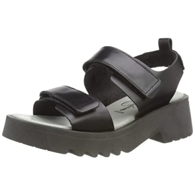 Fly London Women's MEKA857FLY Wedge Sandal,BLACK,6 UK