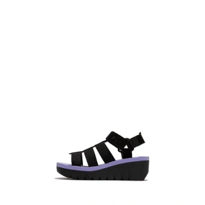 Fly London Women's YOJI198FLY Sandal, Black/Black/Violet, 8 UK