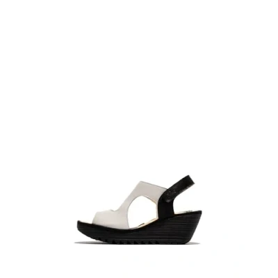 Fly London Women's YOXA576FLY Sandal, White/Black, 8 UK