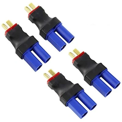 4pcs T Plug Male to EC5 Female Connector. Use for convert battery with T Plug to EC5 on ESC / charger. No wire battery adapter--Less Resistance Than Standard Adapters,great quality and compact,easily add the adapter. Connection is very solid and secure,light weight and compact with excellent performance. Save Time Soldering By Using These Easy To Use Connectors