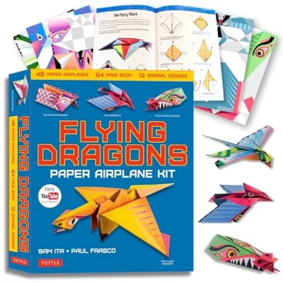 Flying Dragons Paper Airplane Kit: 48 Airplanes, 64 Page Instruction Book, 12 Original Designs, YouTube Video Tutorials