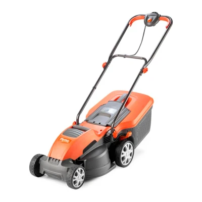Good to know- Keep your lawn nice and tidy with this Flymo mower - with the 36 cm cutting width, you can whip your garden into shape in no time - You can switch between 5 cutting heights to get the perfect grass length - Its 40-litre grass box is big enough to hold loads of cut grass and you'll know when it's full - there's an indicator on the top - The foldable handle makes the mower easy to store away in your garage or shed