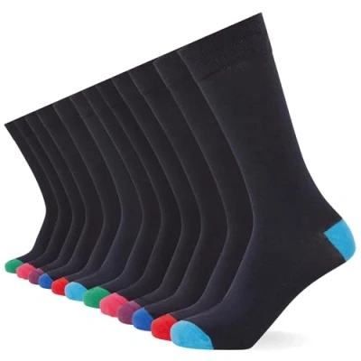 SOFT COMFORT: Crafted with a soft, cotton based material blend helping create a soft and gentle touch against the skin. The seamless design adds to the smooth feel on the foot and ankle FRESH FEET: The moisture-wicking fabric absorbs perspiration, helping keep your feet dry, while the breathable material encourages airflow and ventilation for a refreshing wearing experience SECURE SUPPORT: The stretchy and flexible fabric helps create an ergonomic fit, conforming to your foot and ankle, while the ribbed cuff helps to securely fit the sock and minimises slipping SMART STYLE: Elevate your office wear with a subtle pop of colour. Featuring vibrant shades on a black base with coloured heels and toes, or argyle patterns adding a touch of fun to your professional look
