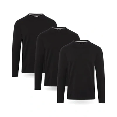 FM London 3 Pack Long Sleeve T Shirt Mens Flattering Fit, Premium Weight, Super Soft Cotton Crew Neck Shirts