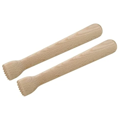 Application: for processing limes, lemons etc. For cocktails, lemonades and other drinks High-quality workmanship: sharply milled prongs for effective handling FMprofessional - Professional range of kitchen and catering aids from Fackelmann Material: wood - cleaning by hand Box contents: 1 x 2 bar muddlers (dimensions: length each approx. 22 cm, diameter between 2 and 3.2 cm each)