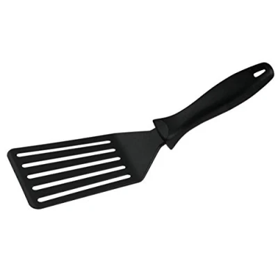 Turn, serve, enjoy: the turner is ideal for turning treats directly in the pan, but thanks to the practical slots, it is also a lifesaver for burger patties Comfortable handling: the handle of the kitchen aid is ergonomically designed and therefore always fits perfectly in the hand For extremely high temperatures: the turner is extra temperature-resistant up to +270°C Box contents: 1 x spatula (29 x 8.5 cm), material: plastic, colour: black FMprofessional Professional range of kitchen and catering aids from Fackelmann
