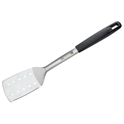 CONVENIENT Extra long stainless steel spatula with wavy blade on one side Application: the integrated holes allow unwanted frying fat to drip off, with the wavy blade fried food can be cut through Box contents: 1 x grill/roasting spatula (approx. 46 x 4.5 x 9 cm) Material: handle made of plastic, functional part made of stainless steel – dishwasher-safe FMprofessional - Professional range of kitchen and catering aids from Fackelmann, Weight: 0.60406659788 pounds, Manufacturer: Fackelmann