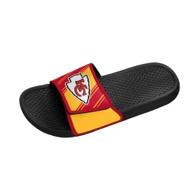 Team-colored design with bold team logo display on footbed Slip-on style with open-toe design; two piece reinforced padded adjustable strap Men's sizes: (Small 7-8) - (Medium 9-10) - (Large 11-12) - (X-Large 13-14) available in all leagues Surface washable; pebbled sole for comfort Package Dimensions: 12" L x 8" W x 2" H