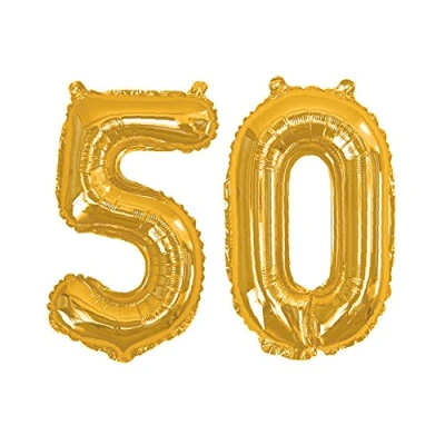 16" balloons, featuring '50' in a shiny gold foil colour Each pack includes 2 balloons, a straw for easy inflation and ribbon in a randomly selected colour. No helium needed. Inflation with air. Perfect to combine with a broad variety of party decorations and accessories, Manufacturer: Neviti