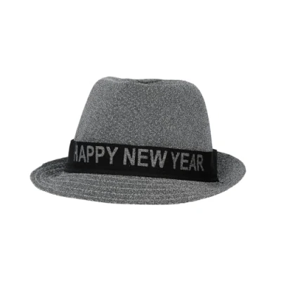 Folat 04471 Trilby Hat Lurex Silver New Year's Eve Decoration, Year Party, Band with Lettering Happy Year,