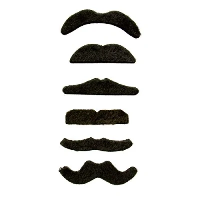 Black Moustache Set - 6 pieces. There are 6 moustaches in a package. Each moustache has a different shape, which moustache suits you best? Suitable for adults and children. This item is made of polyester., Manufacturer: Folat