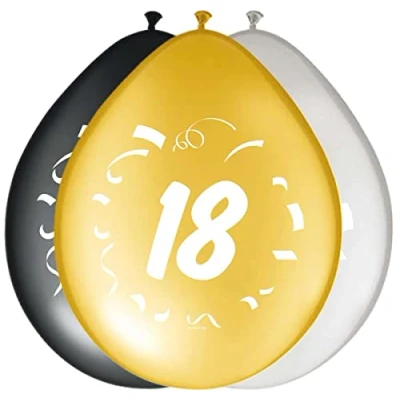 18th Birthday Balloons Stylish Party. Content: 8 Latex Balloons. Colour: Multi Colors. A balloon is 12 inch/30 cm.This article is made from latex. These latex balloons are perfect for Birthdays and Teenage Parties. Folat has been delivering smiles for over 25 years. With a wide range of exciting party products, all created according to European safety standards, we are Europe’s leading party supplier., Manufacturer: Folat