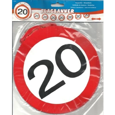 20th birthday traffic sign garland. Contents: 1 sign garland and is made of paper. The article is 12 m long and multi coloured. These are perfect for a birthday and anniversary and theme party. Folat has a wide range of interesting party products and all created in accordance with European safety standards.We deliver smiles., Manufacturer: Folat