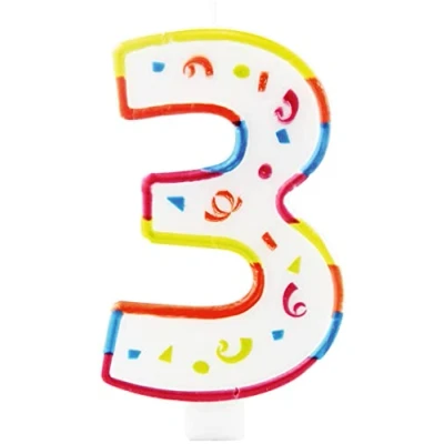 XL candle 3 years with holders. Contents: 1 candle. Colour: Multi Colors. Dimensions: 75 x 125 x 13 mm. Double-sided print. This article is made of wax. You can use this article for the following party occasion(s): Children's party., Manufacturer: Folat