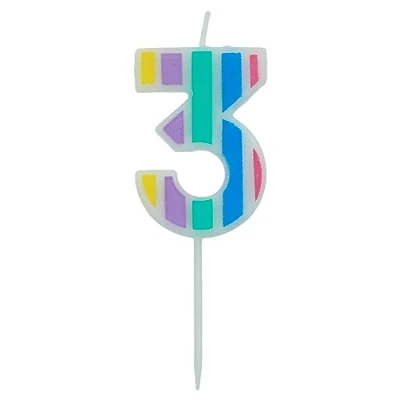 Folat 24263 Candle Pastel Number 3 Multicolour Cake Decorations for Birthday Anniversary Wedding Graduation Party, Multi Colors, 5 cm