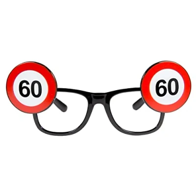 Folat 24960 60th Birthday Traffic Sign Glasses, Unisex Adult, Multi Colors, Zahl 60