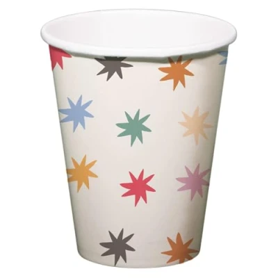 A cheerful toast! Starburst Tumbler 250ml Pack of 8 Contents: 8 drinking cups. You can use this item for the following party occasions: birthday, theme party. Paper cups with colourful stars to toast cheerfully at any party. Suitable for birthdays of young and old, all year round. These mugs are part of the Starburst collection by Folat. This item is made of FSC paper.