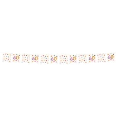 60 years! This should be celebrated. Flag Banner - 60 - Starburst - 6 Meters Contents: 1 bunting You can use this item for the following party occasions: birthday, anniversary. A cheerful flag line full of colorful stars to celebrate every 60th anniversary. On this 6 metre long flag line there are 16 flags in the format 21 x 18. The flags are printed on both sides and alternate with the Starburst pattern and the number "60". They can be pushed back and forth on the white ribbon. This flag line is part of the Starburst collection by Folat. This item is made of FSC paper.
