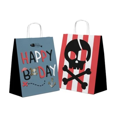For treasures from the deepest sea! Gift Bags - Pirate Party - 20 x 27 cm - Pack of 6. Contents: 6 gift bags. Prepare for an exciting adventure with our unisex pirate party collection - perfect for children's birthday parties at any time of year. You can use this item for party occasions: children's party, birthday party. From pirate hats, coins and swords to garlands, balloons and harnesses, Folat's Pirate Party has it all.