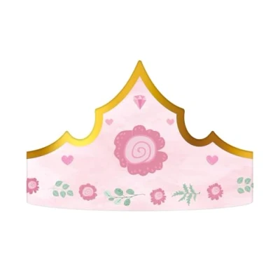 Only for the real princesses. Crowns - Pretty Princess - Pack of 6. Fairytale charm meets royal charm. With soft colour combinations and sparkling details, this collection will make any birthday a royal dream. From an enchanting carriage pinata to colourful garlands to beautiful tableware. Each product in the Pretty Princess collection adds a touch of elegance to the atmosphere and is ideal for memorable princess themed parties and celebrations. You can use this item for party occasions: children's party, birthday, theme party. Light pink paper crowns with cute flowers and a real shiny gold rim thanks to the hot stamping technology used. The crowns are approx. 10 cm high and 60 cm long. The princess crowns can be easily adjusted to the size. These crowns belong to the Pretty Princess collection by Folat., Manufacturer: Folat
