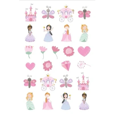 Shows who a princess is! Tattoos - Pretty Princess - Pack of 25. Fairytale charm meets royal charm. With soft colour combinations and sparkling details, this collection will make any birthday a royal dream. From an enchanting carriage pinata to colourful garlands to beautiful tableware. Each product in the Pretty Princess collection adds a touch of elegance to the atmosphere and is ideal for memorable princess themed parties and celebrations. You can use this item for party occasions: children's party, birthday, theme party. These beautiful fake tattoos make any princess party unforgettable. The pack contains 1 tattoo sticker sheet with 25 tattoos. The back of the pack says how to use the tattoos. The sticker sheet is 14 x 21 cm. These tattoos belong to the Pretty Princess collection of Folat.