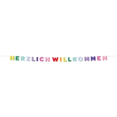 A warm welcome! Garland of Letters - "Herzlich Willkommen" - Stripetastic - 2.6 m. A cheerful and attractive party collection with bright and colourful stripes for everyone. It offers a very wide range of fun and festive items that can be used for any celebration or event throughout the year. For example to be used during the following party/celebration occasions: Welcome home, housewarming, . Colorful hanging decoration with super fun effect when they turn around. The spirals have a diameter of approximately 5 cm and are approximately 1 m long and come with a plastic hook for hanging. Printed on both sides. These spirals are part of the Stripetastic collection by Folat. This item is made of paper., Manufacturer: Folat