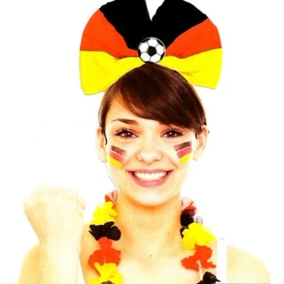 Tiara with bow Germany black-red-yellow. Contents: 1 Tiara. Colour: Multi Colors. Target group: Adults. The article is made of polyester. You can use this article for the following party occasion(s): Football and Theme parties., Manufacturer: Folat