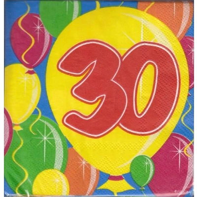 30th birthday balloons napkins. Content: 20 pieces napkins and each napkin is 25 x 25cm. The napkins are made of paper and multicolor. These are perfect for a party,children's party and theme party. Folat has a wide range of interesting party products, all created in accordance with European safety standards.We deliver smiles.
