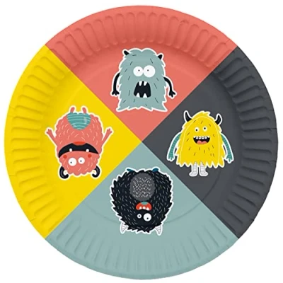 Monster Bash Disposable Plates 23 cm Pack of 8 Contents: 8 disposable plates. Colour: multi-coloured Whether for parties, events or birthday parties, the plates are suitable for any occasion and will impress your guests The simple and discreet paper plate is suitable for any occasion: birthday, children's party, baby shower, barbecue party, picnic, anniversary, company party, summer party, Christmas party, New Year's Eve and other occasions High quality materials: they are ideal for party decoration and can surprise any party