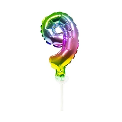 Folat 63069 Foil Balloon Cake Topper Rainbow Number 9 13cm, Multi Colors, 13cm