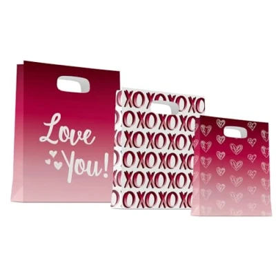 Give love! 3 x Ombre Love Gift Bags Contents: 3 gift bags. Perfect for all romantic occasions such as anniversary parties, weddings, showers, Valentine's Day and other special occasions Three beautiful bags to give love. Each bag has a different size: 27 x 20 x 10 cm (red ombre effect with white text "Love You"), 23 x 15.5 x 6 cm (white with red ombre effect text "XOXOXO") and 18 x 12 x 6 cm (red ombre effect with white hearts. All bags are printed on both sides. This item is made of paper., Manufacturer: Folat