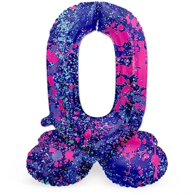 Folat 63920 Standing 0 Paint Splash Purple Space 72 cm Birthday Decoration Balloon Number No Helium Required, Bunt, Standard Size