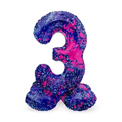 Folat 63923 Standing 3 Paint Splash Purple Space 72 cm Birthday Decoration Balloon Number No Helium Required, Multicoloured, Standard Size