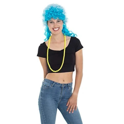 Neon blue afro wig with long curls. The wig is suitable for adults and one size fits most. The wig is made of polyester and all of our wigs are fire resistant treated. Wear this wig during carnival,theme parties and halloween. Folat has a wide range of interesting party products, all created in accordance with European safety standards.We deliver smiles., Manufacturer: Folat