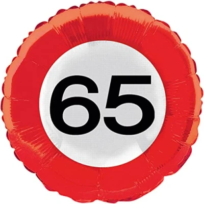 65th birthday traffic sign foil balloon. Contents: 1 balloon and it measures 46 cm. The balloon is multi coloured and is made of foil. These are perfect for a party and theme party. Folat has a wide range of interesting party products, all created in accordance with European safety standards.We deliver smiles., Manufacturer: Creative