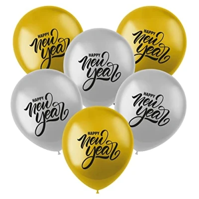 Balloons New Year's Eve Happy New Year Contents: 10 Latex Balloons Colour: gold and silver Our New Year's Eve set balloons have 6 balloons for a very special New Year's Eve experience Happy New Year party photo props, bright colours can attract everyone's attention Easy to use: our foil balloon can support air and helium, and the balloon can be quickly inflated with a straw or pump, Manufacturer: Folat