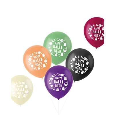 Happy Halloween balloons, 33 cm, pack of 6. Contents: 6 latex balloons. Colour: multi-coloured. Scary decoration: for Halloween celebration, creepy themed party, Day of the Dead and for events in schools, restaurants, bars and much more. ! Great decoration: the perfect addition decoration for any party. The set is colourful, but is also a creepy highlight High-quality materials: our products are made of strong and durable material. They are ideal for party decoration and can surprise any party., Manufacturer: Folat