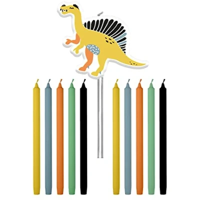Dino Roars Candles 10 cm Pack of 11 Contents: 11 candles and 10 candle holders. Colour: multi-coloured. You can use this item for the following party occasions: kids party. Each candle is approximately 10cm high. This item is made of wax.