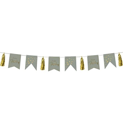 Bunting with tassels Golden Dawn - 4 metres. Package:1 x Flag Leash Colour: grey. 🎁 Perfect decoration: birthday, wedding, baby shower, marriage proposal, family reunion, anniversary, graduation and other party decorations. They are the ideal decoration for any party. This garland is 4 metres long with 6 flags and 4 tassels. This item is printed on both sides. High-quality materials: our products are made of strong and durable material. They are ideal for party decoration and can surprise any party.
