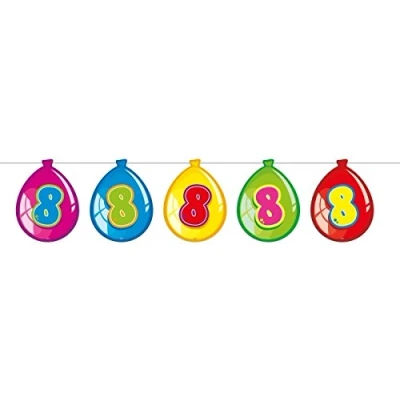 8th birthday balloon garland. Content: 1 garland of 10 meters and multicolor. This garland is made of paper. These garland are perfect for a birthday,children's party and theme party. Folat has a wide range of interesting party products, all created in accordance with European safety standards.We deliver smiles., Manufacturer: Folat