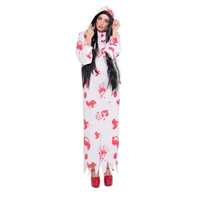 Ghost costume with bloodstains for women. Clothing size specification: size: 36-38, clothing size: S-M. Costume color is white and this suit is made of 100% polyester. You can wear the costume very well during Carnival, Halloween, theme party. Folat has a wide range of interesting party products, all created in accordance with European safety standards.We deliver smiles., Manufacturer: Folat