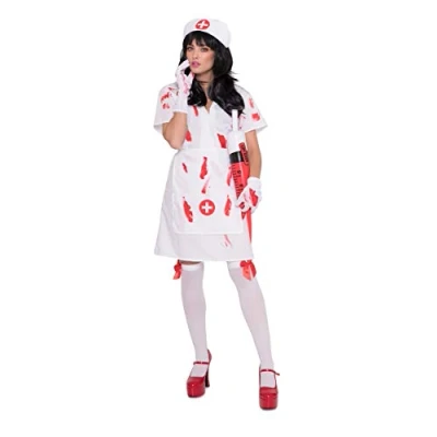 Zombie nurse costume. Clothing size specification: size: 36-38, clothing size: S-M. Costume color is white and this suit is made of 100% polyester. You can wear the costume very well during Carnival, Halloween, theme party. Folat has a wide range of interesting party products, all created in accordance with European safety standards.We deliver smiles., Manufacturer: Folat