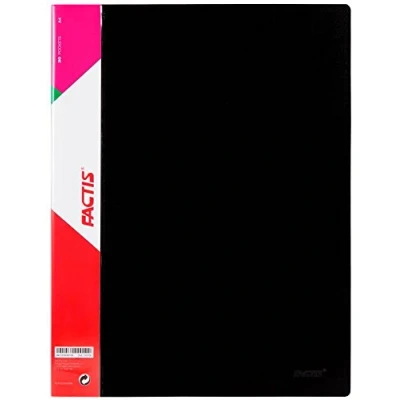 Black plastic hard cover folder, rough finish. Loin with removable foil to customize the label. Contains 30 clear covers (A4)