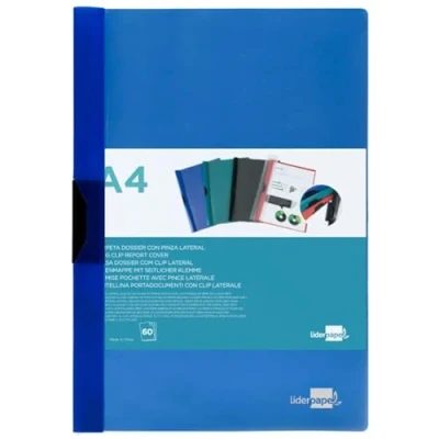 Folder liderpaper dossier side clip polypropylene din a4 translucent blue 60 sheets slide clip