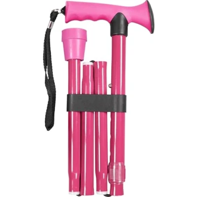 Folding Adjustable Walking Stick with Ergonomic Rubber Handle, 5 Height Settings, Lightweight Aluminum, Wrist Strap, and Non Slip Tip. Compact for Travel. Supports up to 100kg.Pink