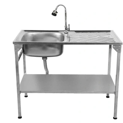 Folding Camping Sink Stainless Steel with Flexible Tap Portable Hand Wash Basin Single Bowl RH Drainer Drainage Pipe Height Adjustable Feet Outdoor Free Carry Storage Bag Chopping Board & 5 x Hooks