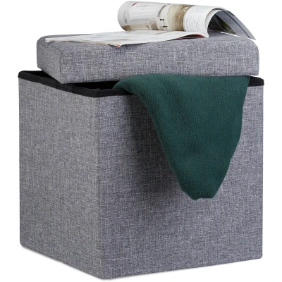 General description This Relaxdays Folding Ottoman is a versatile storage solution that combines style and functionality. With ample storage space, it can hold pillows, newspapers, toys, and more. The ottoman can be easily folded for convenient storage when not in use, making it perfect for freeing up space in children's rooms, living rooms, or kitchens. Its elegant design and weather-resistant linen cover add a natural charm to any home, while also serving as a footstool or side table for working on your laptop. Technical specifications Outer dimensions: 38 x 38 x 38 cm Inner dimensions: 34 x 34 x 34 cm Size when folded: approximately 6 x 38 x 38 cm Weight: approximately 2.5 kg (5.5 lbs) Material: linen Storage capacity: approximately 40 L Maximum weight support: 300 kg Included in Delivery Folding ottoman Removable lid Floor insert Decorative items shown in product photos are not included