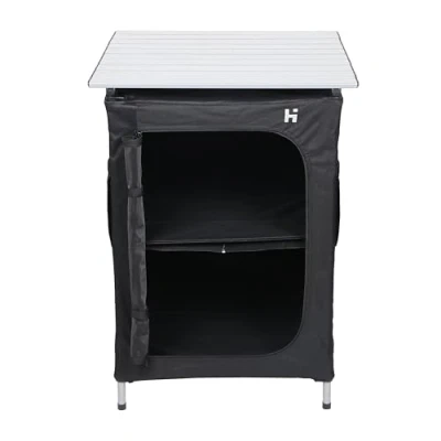 BlacksAccessible from all sides, this handy cupboard will provide versatile storage on your family camping trips. When it's time to head home, it folds down to a compact size for easy storage and transportation. Collapsible for easy use No tools required Durable and sturdy aluminium frame Carry bag included for easy transportation Dimensions: 59 x 58 x 83 cm (LxWxH) Packed dimensions: 80 x 23 x 18 cm (LxWxH) Weight: 6.2 kg Max load: 30 kg