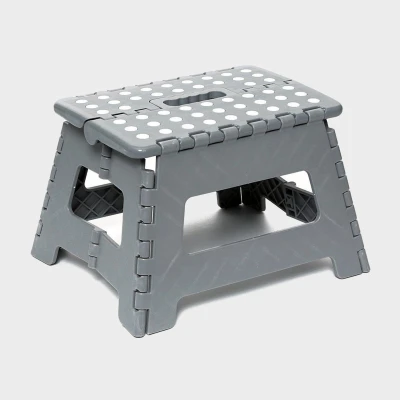 Lightweight, compact, and durable Folds flat for easy storage Built-in carry handle Anti-slip, textured surface Maximum load: 110kg Dimensions: 31cm x 22cm x 22cm (L x W x H) Weight: approx. 100g Please note that this step is designed to be used as a step-up, it's not suitable to step down onto.