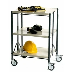 Folding Trolley; 3 Tier; Swivel (x2 Braked) Castors; Steel Creme/Black